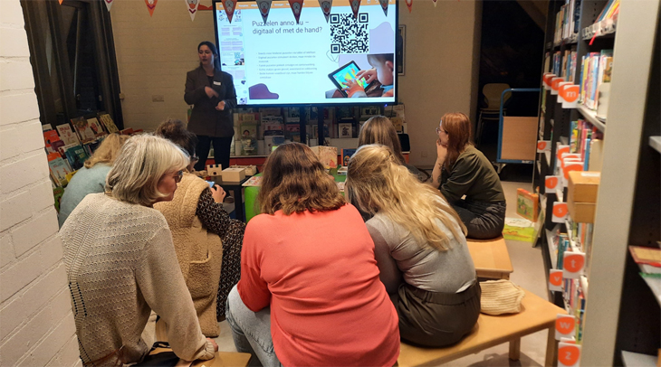 Ouders volgden workshops over puzzelen, leesplezier en ouderschap. Aan het eind van de avond richtten ouders spontaan een gezamenlijke groepsapp op om elkaar te helpen bij vragen en knelpunten. Een mooie afsluiting van een inspirerende avond!